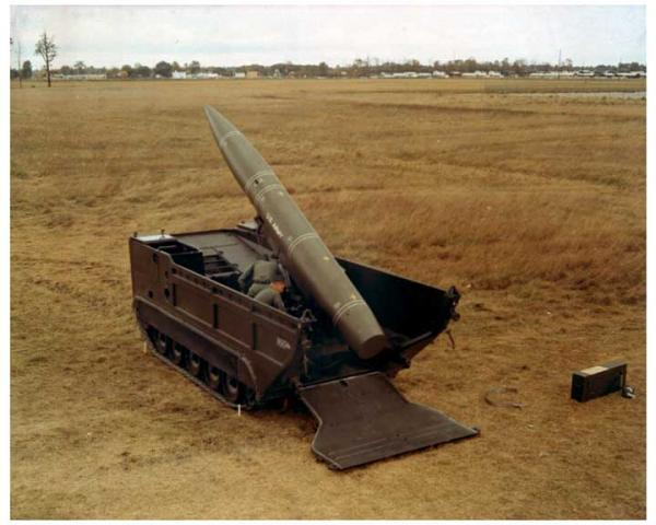 面对印军明显效仿冷战时代苏联的战略,巴基斯坦的防御战略也自然就模仿了冷战时代的北约,图为当初美国用于阻止苏联坦克洪流的最后一招——长矛导弹,射程70-120公里,战斗部1-100千吨,采用小型履带式底盘,隐蔽性极高