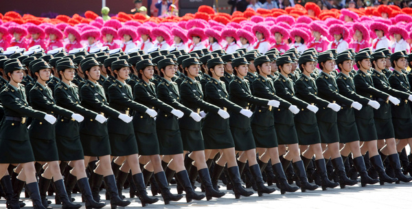 在2015年中国首次为纪念抗日战争胜利举行的9·3阅兵式上,中国女兵创下“第一”:三军仪仗队首次出现女兵,与男兵一道组成混编仪仗护旗方队;联合军乐团首次出现女兵,与男兵一道指挥和演奏军乐。