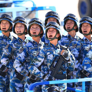 据央视报道,此次共有9个作战群受阅,海上作战群中“两栖霸王花”首次以战斗员身份亮相沙场。据悉,这群女兵平均年龄20岁。