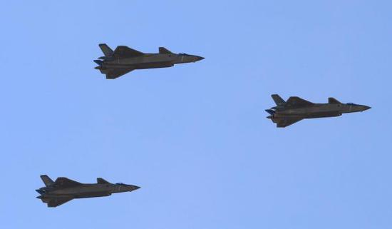中国最先进的隐形战斗机于今年3月份进入空军服役,其中3架参加了阅兵。这款双发战斗机是由成都飞机工业集团公司研制的,与美国的F-22和F-35战机相比,它的航程更长,可携带更多的燃料和武器。