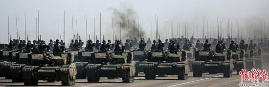 7月30日,庆祝中国人民解放军建军90周年阅兵在位于内蒙古的朱日和训练基地举行。图为坦克方队。中国青年报·中青在线记者 赵迪/摄