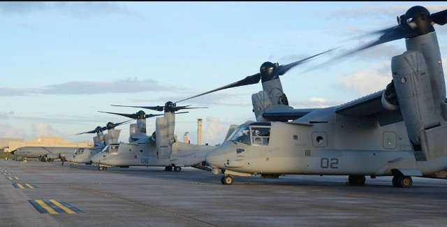 “鱼鹰”运输机是一种倾转旋翼机,即可像直升机一样升降,像飞机一样飞行。按日本媒体说法,美军现阶段在冲绳普天间基地部署了20多架MV-22型“鱼鹰”。
