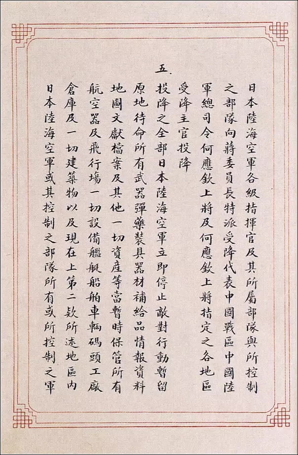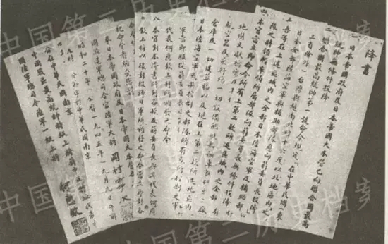 1945年9月9日,日本政府向中国政府投降降书的照片。(据国家档案局网站)