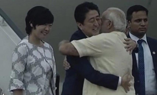 莫迪热烈欢迎安倍。(图片来源:印度时报)