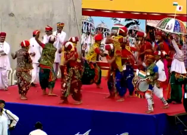 莫迪与安倍观赏“路演”。(图片来源:今日印度)