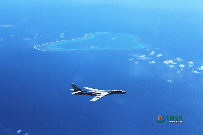 轰-6K战机在黄岩岛上空巡航。刘锐摄影