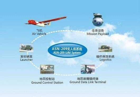 此外,ASN-209系列无人机系统由飞机、机载侦察任务设备、地面控制站和发射回收装置组成,能够对地面目标进行跟踪、定位和自主校正。通过无线电数据链,可以对无人机进行实时控制,机载侦察图像信息则能实时传送到地面控制站。