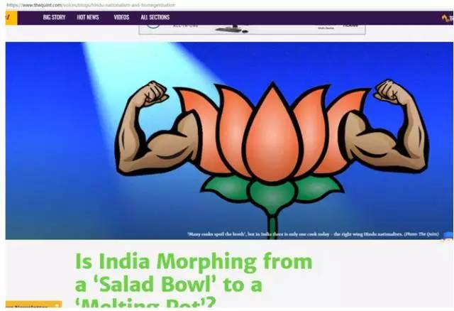 当然,能让印度人产生自豪感的远不止是火箭卫星。本月12日,印度thequint网站上,一位作者称,看到一篇文章说印度是一个沙拉拼盘,所有的要素都相互区分、清晰可辨,同时又创造出了一个健康的东西,“令人吃惊”。文章认为,每一个社区和宗教的角色都让印度更为强大,“沙拉拼盘”堪比甚至胜过“大熔炉”。谁是“大熔炉”?众所周知,许多人经常以此代称美国。