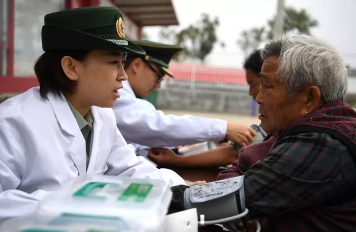 武警湖北总队黄冈支队官兵,来到黄冈市路口镇花园村,看望慰问村里老人,为他们送去生活用品,测量血压、送医送药,真正把党的温暖和关怀送到了困难群众心坎上。(何智利、曹雷)