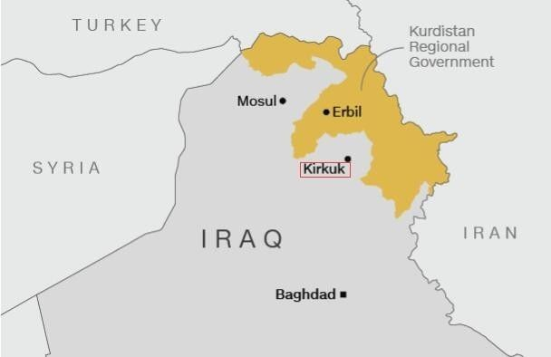 ▲伊拉克基尔库克地理位置示意图(CNN)