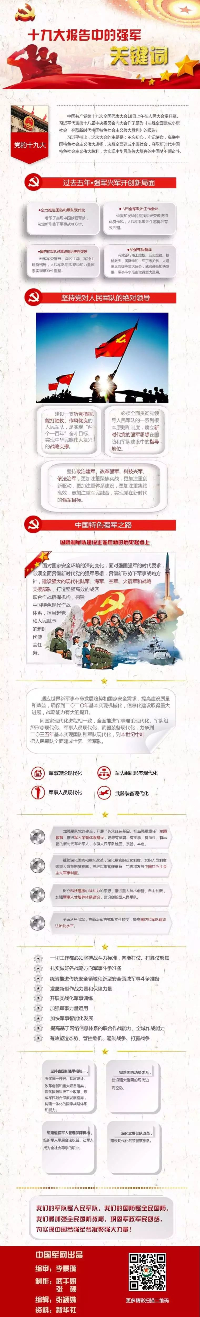报告全文3万多字,3个多小时的演讲。关于十九大中的强军关键词,中国军网一图详解,供大家参考学习!