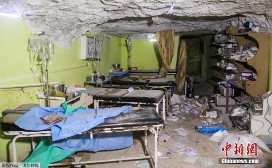 叙利亚西北部城镇汗舍孔4月4日遭到疑似化学武器攻击,据传造成包括儿童在内的约100名平民丧生,还有数百人身体不适。图为遭袭的医院。