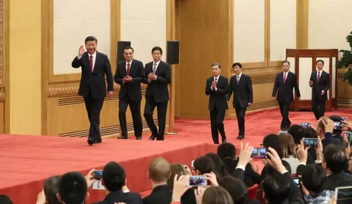 现在,我向大家介绍一下当选的其他6位常委同事:李克强同志、栗战书同志、汪洋同志、王沪宁同志、赵乐际同志、韩正同志。其中,李克强同志是十八届中共中央政治局常委,其他五位同志都是十八届中共中央政治局委员,大家可以通过媒体渠道获得更多有关他们的资料。