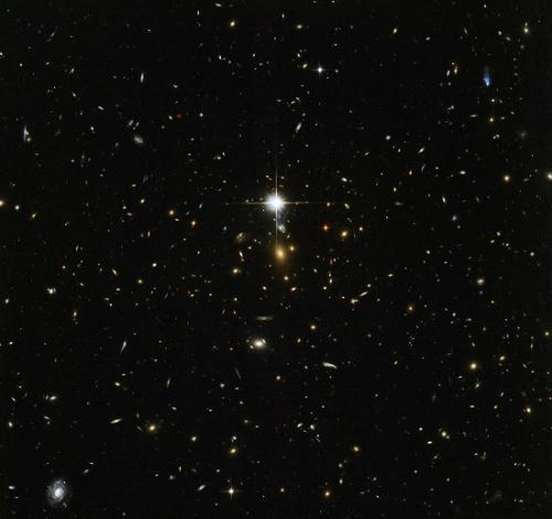 一闪一闪亮晶晶 NASA发布哈勃拍摄星系团照片(图) 中国新闻网 2017.10.3108:58 关注 中新网10月31日电 27日,美国国家航空航天局(NASA)网站发布一张由哈勃天文望远镜拍摄的星系团照片。照片中繁“星”点点,一个亮点就是一个星系。 照片中繁“星”点点,一个亮点就是一个星系。(图片来源:NASA)NASA介绍,除了中间最闪的大点是我们太阳系中的一颗恒星,不小心“入镜”外,图中每一个亮点都是不同的星系。在宇宙中,行星围绕恒星,恒星组成星系,星系构成星系群,而星系群则组成星系团。星系团内包含着成百上千个被引力束缚在一起的星系。
