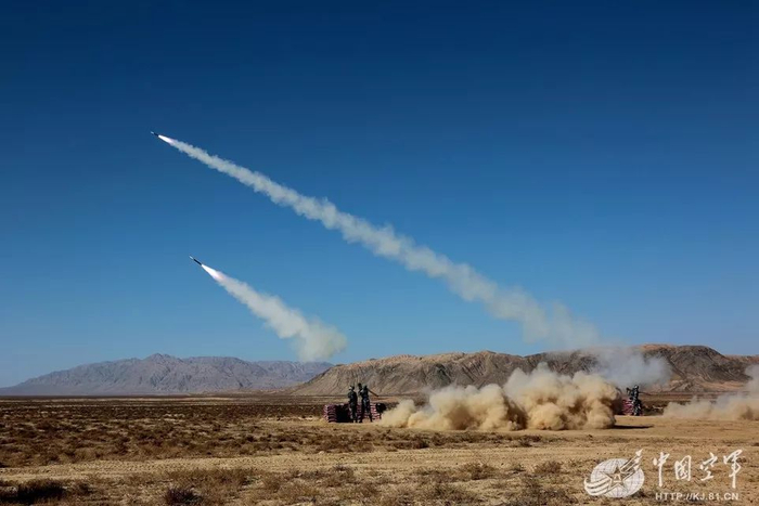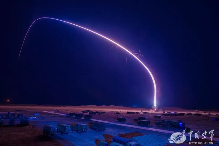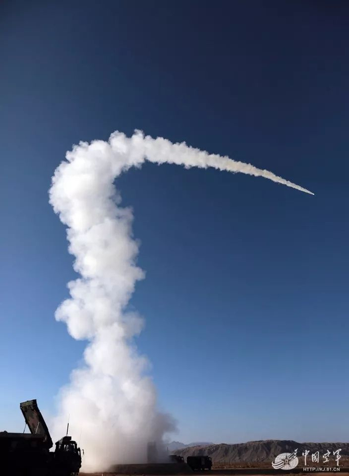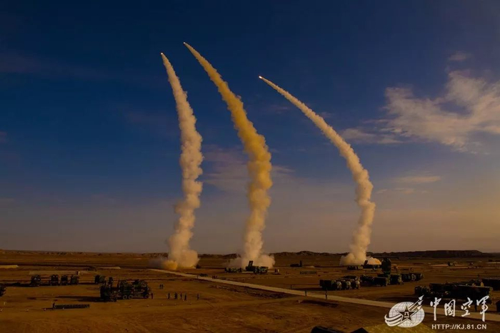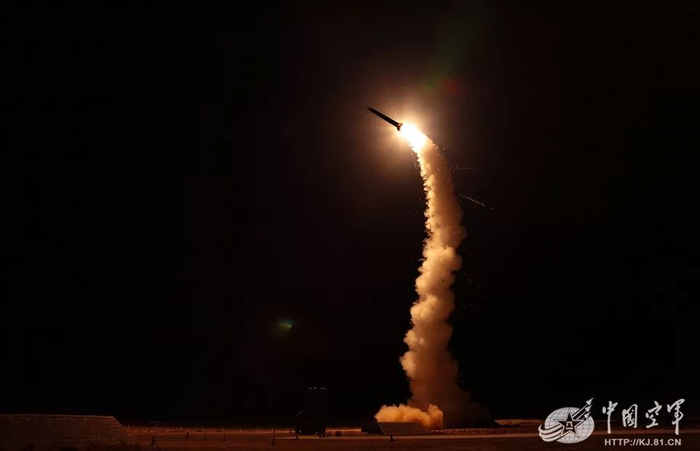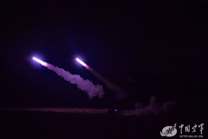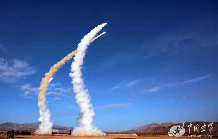 空军地导弹某旅三枚导弹连射扑向临空多个目标。李明摄