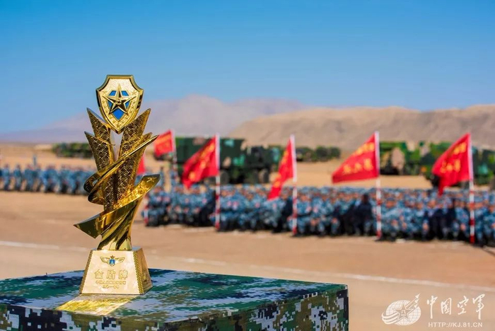 结合演习组织“金盾牌”比武竞赛,是今年以来空军在组织“蓝盾”系列演习中的一个探索。比武竞赛设置的“金盾牌”奖是空军地空导弹部队训练领域的至高荣誉,是与“金头盔”“金飞镖”并列的空军级奖项。今年4月,空军决出首个“金盾牌”奖,下一步还将常态化组织装备同型号武器装备的地空导弹部队角逐“金盾牌”。