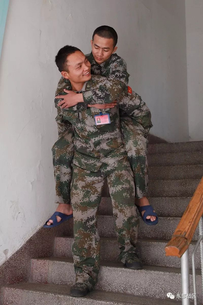 别人都是戴着大红花走进军营,而小庞却是在班长的背上走进了军营,入伍都是如此的特别,注定了他的不平凡。