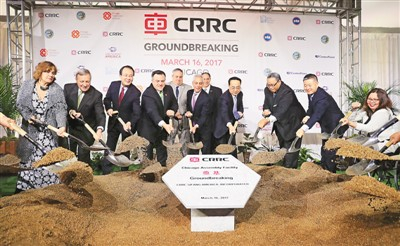 中国中车青岛四方机车车辆股份有限公司3月16日在美国芝加哥东南郊的老工业基地举行建厂动工仪式,标志中国地铁出口发达国家最高纪录订单的生产正式启动。新华社记者 汪 平摄