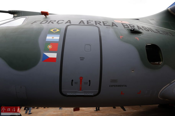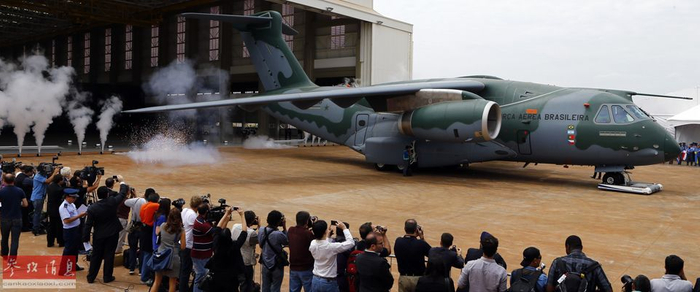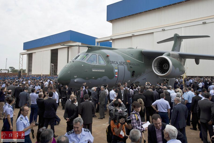 10月21日,在巴西圣保罗州加维昂佩绍图,来宾向一架新的KC-390大型运输机喷洒香槟。巴西航空工业公司当日在圣保罗州加维昂佩绍图生产基地展示了其生产的最大型运输机KC-390。KC-390是一款用于运送部队和补给的运输机,同时也可执行搜救、森林火灾救险等任务,可运输26吨货物,时速可达870公里。