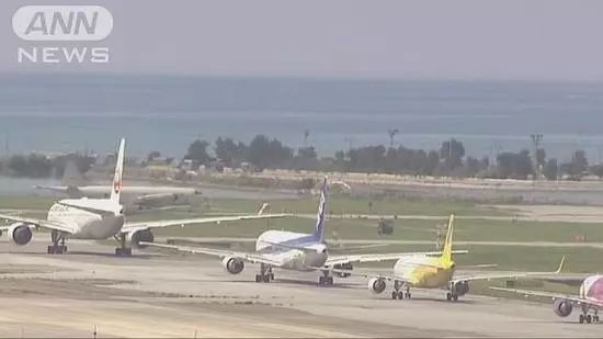 那霸机场大量民航客机滞留(图源:全日本新闻网ANN)