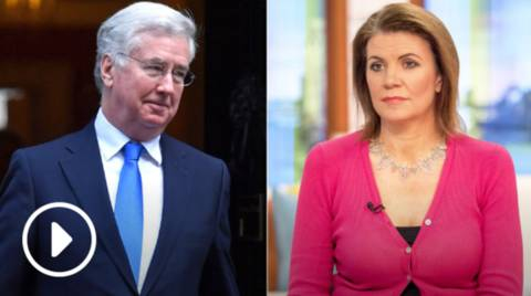 英国前国防大臣迈克尔·法伦爵士和女记者朱莉娅·哈特利-布鲁尔。(图片来源:视频截图)