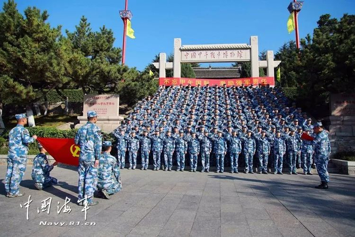 ▲登上刘公岛,官兵们的心情无疑是沉痛的