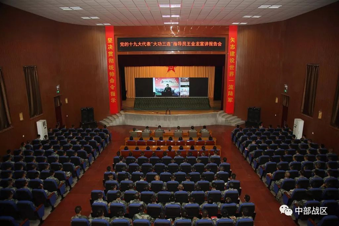 该旅官兵认真聆听党的十九大代表王金龙作宣讲大会精神。