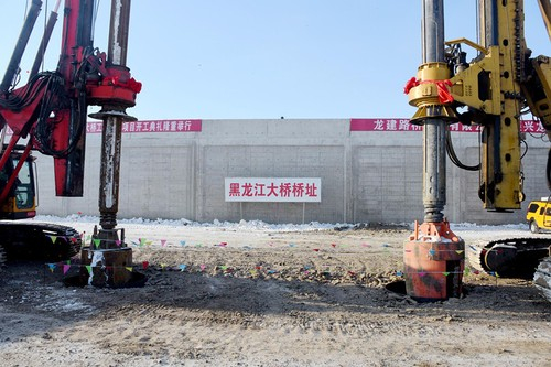 2016年12月24日,中俄界河黑龙江上的第一座现代化公路大桥——黑河至布拉戈维申斯克黑龙江(阿穆尔河)大桥项目举行开工仪式。 新华社发