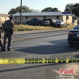 5日的枪击事件发生在得州南部小镇萨瑟兰斯普林斯(Sutherland Springs),该地位于圣安东尼奥市东南方向约40英里处,人口仅有约400人。图为警方在事发现场拉起警戒线。