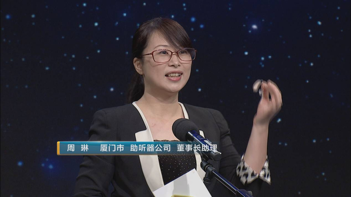 厦门市助听器公司 董事长助理周琳带来了一款助听器,这款助听器可以通过蓝牙连接手机,在手机上对这款助听器进行验配。“老人外出行动是很不方便的,但是现在如果你们要配助听器的话,因为要调试,所以你们一定要到门店去,有时候可能来回要折腾好几趟,才可能配到一个合适的助听器。所以研发了这么一个APP,我们可以在APP上对这个助听器进行音量调节,频段调节,模式调节。其实我们都知道为什么助听器的价格会那么高,是因为助听器的主要零部件是由这些跨国集团所控制,助听器主要是由三大部分组成,授话器、麦克风还有最重要的芯片。这三大零部件都被跨国集团所垄断。那么我们如果说想要在中国销售我们自己的助听器,我们就要去研发自己的芯片、麦克风和授话器。”
