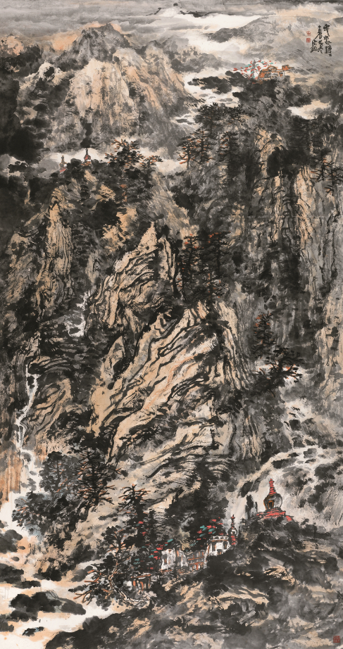 买鸿钧作品《云水苍茫》(中国美术馆藏)186×96cm 2012年