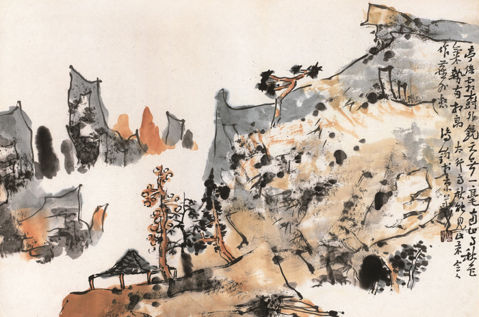 此外,买鸿钧还留下了大量诗稿和随笔。诗情、画意在买鸿钧的作品中得以完美结合。他认为中国画创作是需要画家有文人的修为,诗人的情怀,这样的画才会耐看、耐品。从买鸿钧的笔墨与笔记里,都不难看出他师法古人更师法自然,他写生的足迹遍及祖国大江南北,风餐露宿,旁搜远绍,取精用闳,从河山造化中领略山水精神。他在《新安游记》中写道:“其间宿齐云山巅八日,偕弟子二三,攀毓秀亭、紫霄崖,上方腊寨,过会仙阁,出白云关,登楼上楼。俯瞰五老峰松,仰观仙人挂画;朝对白雾横江,看烟云弄幻;夜访山林野士,问人事沧桑。壶天论道,玄殿听经。及至浮云乱足,拾级千重,归至寓所,已过初更。恍兮忽兮,不知天上人间!人生至此,亦复何求……”他在《齐云山见奇松》中吟咏:“吾辈春游过此间,长松邂逅梦时还。余生拟请山林住,卧看云烟二百年。”在《长生楼头观云》感叹:“万里晴峦紫日曛,横江一带动长云。丹青何代出圣手,画得青山一片春。”这与买鸿钧的山水哲学是相辅相成的。他认为,山水画是中国传统文化的精神图式,一定要从民族文化的根源生发才能让这个古老的画种在新时代迸发新的生命活力,没有继承而空谈发展和创新是无源之水,无本之木。中国的山水画暗涵山水精神、自然规律和天地万物之理,这与中国的哲学精神以及儒道精神是一脉相承的,古人希望通过游览或是“卧游”山水来品味圣人之道,“以形媚道”,中国山水画是“天地有大美而不言”这种最高精神的主观表达。