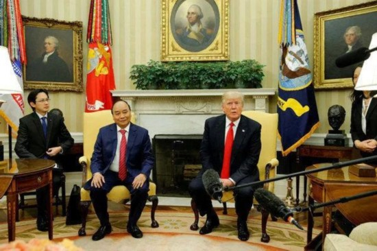 美国总统特朗普(右)2017年5月31日在华盛顿会见到访的越南总理阮春福。新华社/路透
