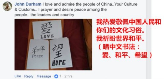 关注中美关系的不仅仅是中美两国人民,来自其他国家的网友也借机“示爱”并对中美关系的未来表达祝愿: