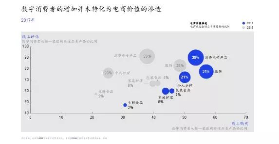 例如麦肯锡上月发布的2017中国数字消费者研究报告就受到了空前关注:在持续6年的快速增长后,中国传统电子商务总交易量增长放缓:从2011年74%的增速下降至2017年的19%预计值。