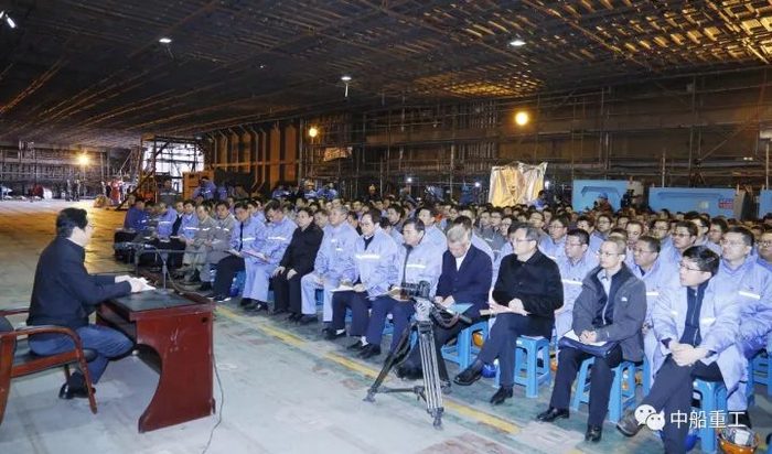 大船集团董事长、党委书记、航母工程现场总指挥、航母工程现场指挥部党委书记刘征主持会议,航母工程现场指挥部党委委员、海军以及航母参研、参建、参试单位的一线党员代表共300余人参加了报告会。