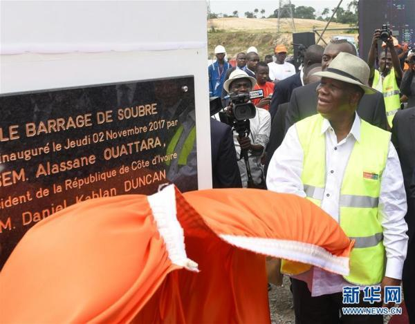 11月2日,在科特迪瓦苏布雷,科特迪瓦总统瓦塔拉出席苏布雷水电站竣工典礼。中企承建的科特迪瓦最大规模水电站——苏布雷水电站竣工典礼2日在科西部苏布雷举行。 新华社 图