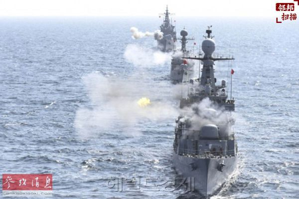 韩国海军实弹射击演习