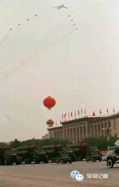 在新中国成立35周年国庆阅兵式上,中国空军飞行员驾驶94架歼7Ⅱ、强5、歼教5、轰6飞机,组成4个梯队飞过天安门上空,接受检阅。
