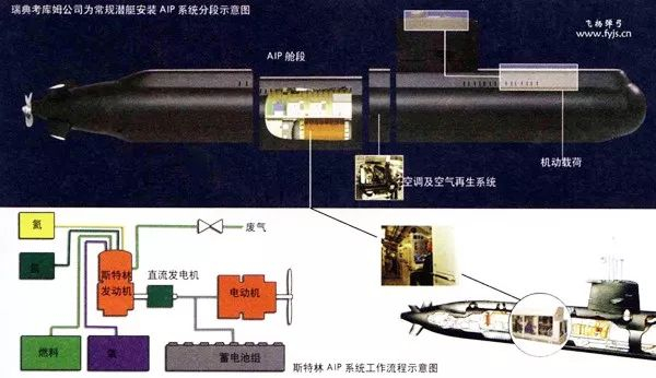 ▲斯特林AIP系统工作流程示意图