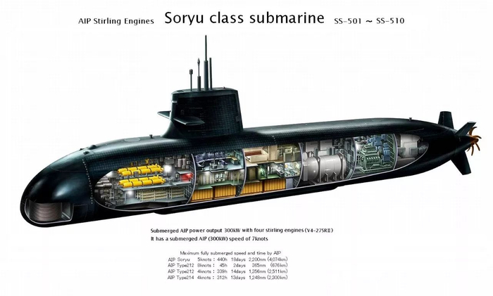 海自将苍龙级标榜为“最强常规潜艇”是因其汇集了日本在二战后60多年的潜艇设计使用经验,采用了多种先进技术。