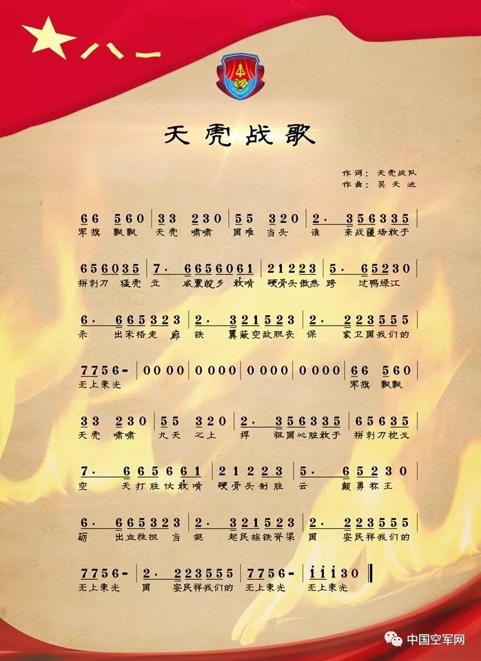 “68年以来,空军的战斗歌曲就是空天下的冲锋号角、战斗誓言,如今这个功能依然未变,让官兵们把旅歌唱响,把歌词含义深植心中,对激励部队有着不可估量的作用。”该旅领导告诉笔者。