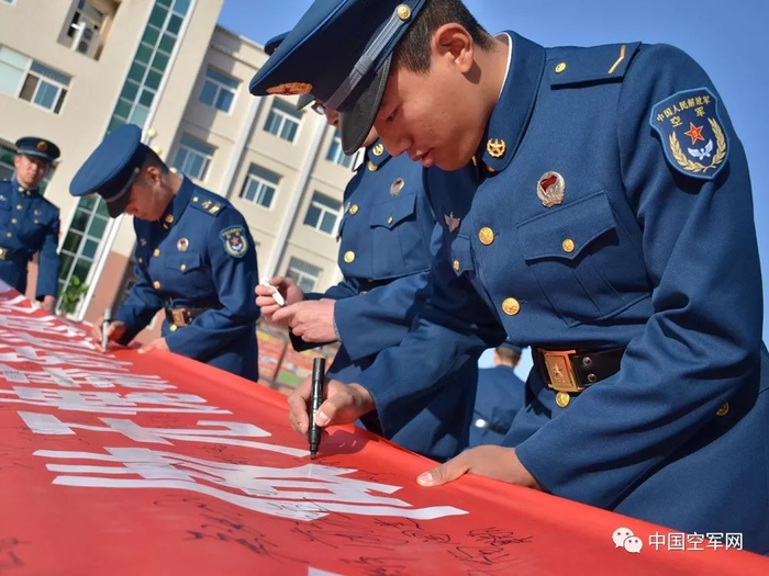 军旗飞扬青春梦,誓言铮铮将士心。宣誓仪式后,全体官兵在横幅上庄重地签下自己的名字。