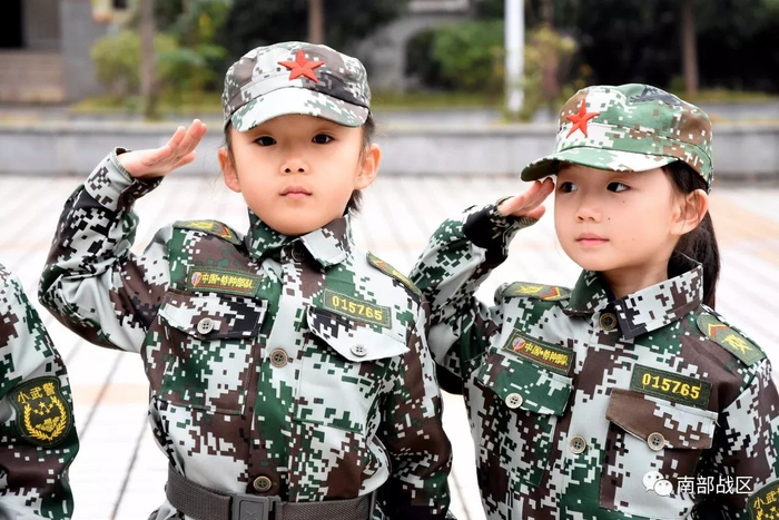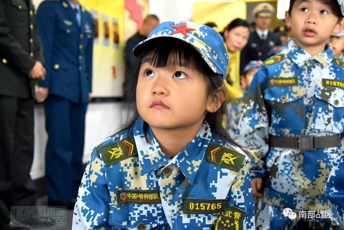 “小小兵”们对大哥哥严整的队列动作目瞪口呆