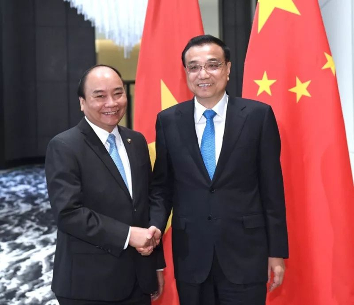 ▲11月13日,国务院总理李克强在菲律宾马尼拉下榻饭店会见越南总理阮春福。