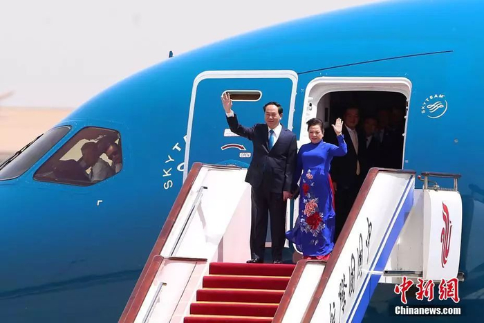▲资料图片:5月11日,越南国家主席陈大光乘坐专机抵达北京首都国际机场,对中国进行国事访问。
