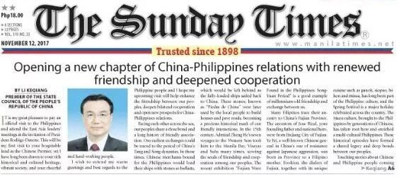 此前一天,他还在菲律宾英文媒体《马尼拉时报》和《菲律宾星报》发表名为《传承友谊,深化合作,共同谱写中菲关系的新篇章》的署名文章。