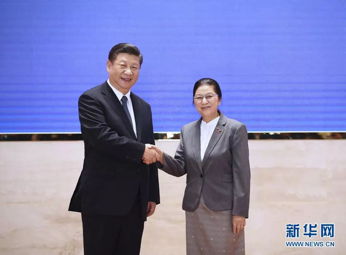 中共中央总书记、国家主席习近平14日在万象下榻饭店会见老挝奔舍那家族友人。