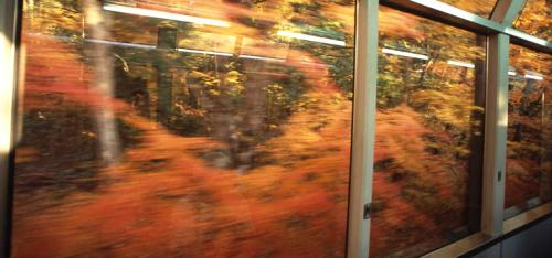 看着鲜艳的红叶和黄叶映照在车窗上,车内的乘客们亦发出欢呼声,有的拍照,有的出神眺望。