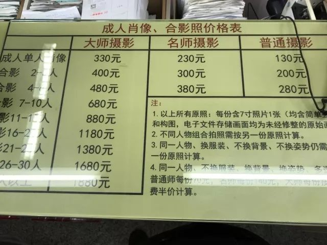 路过照相馆,我建议照几张照片,她想去又犹豫。我说放心吧,这里不贵。进店看了下项目,我指着第一栏告诉服务员说就这个。谁知道小姑娘超级负责,非要确认一下:这个是998的,先交钱再拿着票上三楼。老太太一听,扭头就走。我赶紧跑出去拉住她,说这个是套餐,太贵了,咱们就照一张的,便宜。好说歹说,选了“大师”单张的档,330元。老太太对着这个败家的儿子简直是怒目而视了。